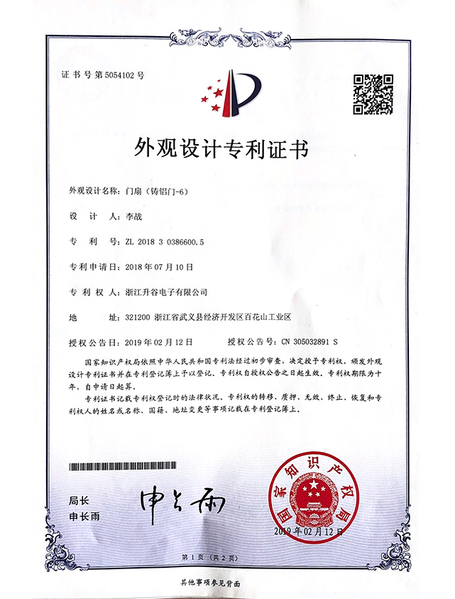 浙江升谷電子有限公司位于素有“溫泉之城”美譽(yù)的浙江省武義;公司始建于2004年,占地面積30000多平方米;是集設(shè)計(jì)、生產(chǎn)、研發(fā)、銷售及運(yùn)營(yíng)管理為一體的綜合性企業(yè),15年專注中高端裝甲門(mén)、鑄鋁防爆門(mén)、鋼包木雙色防盜門(mén)和防盜防爆鎖的高新技術(shù)型企業(yè),具備年生產(chǎn)20萬(wàn)樘的生產(chǎn)能力