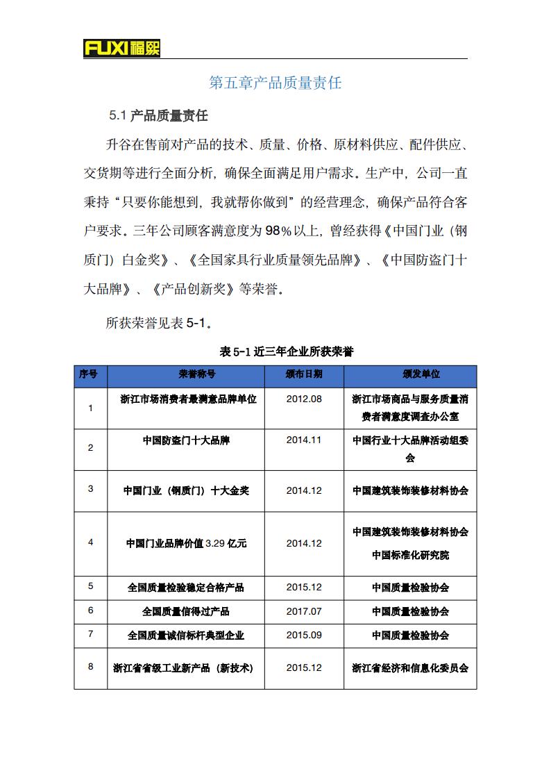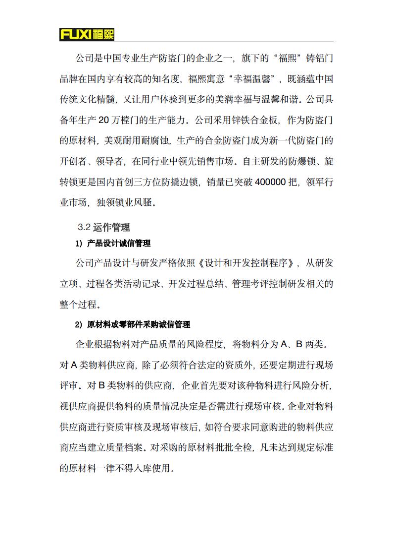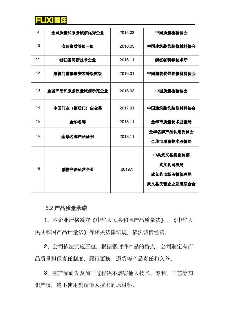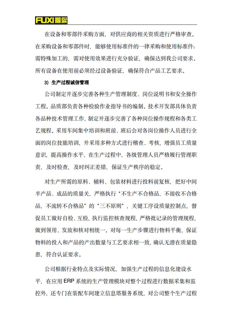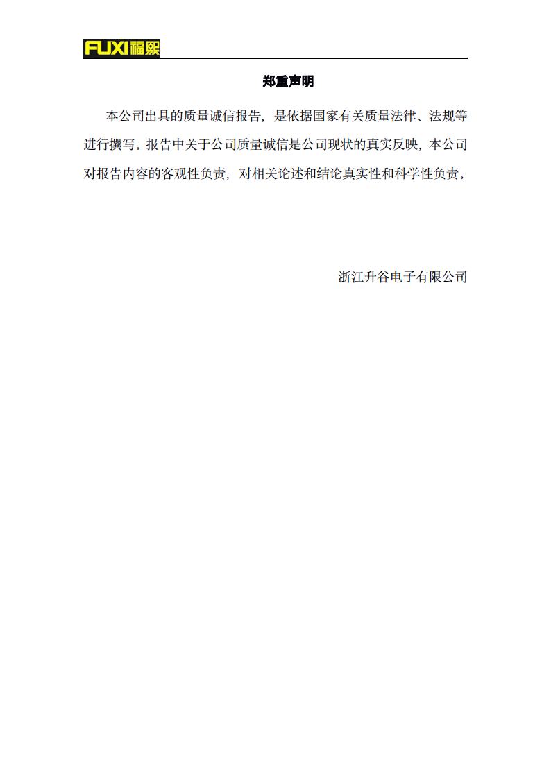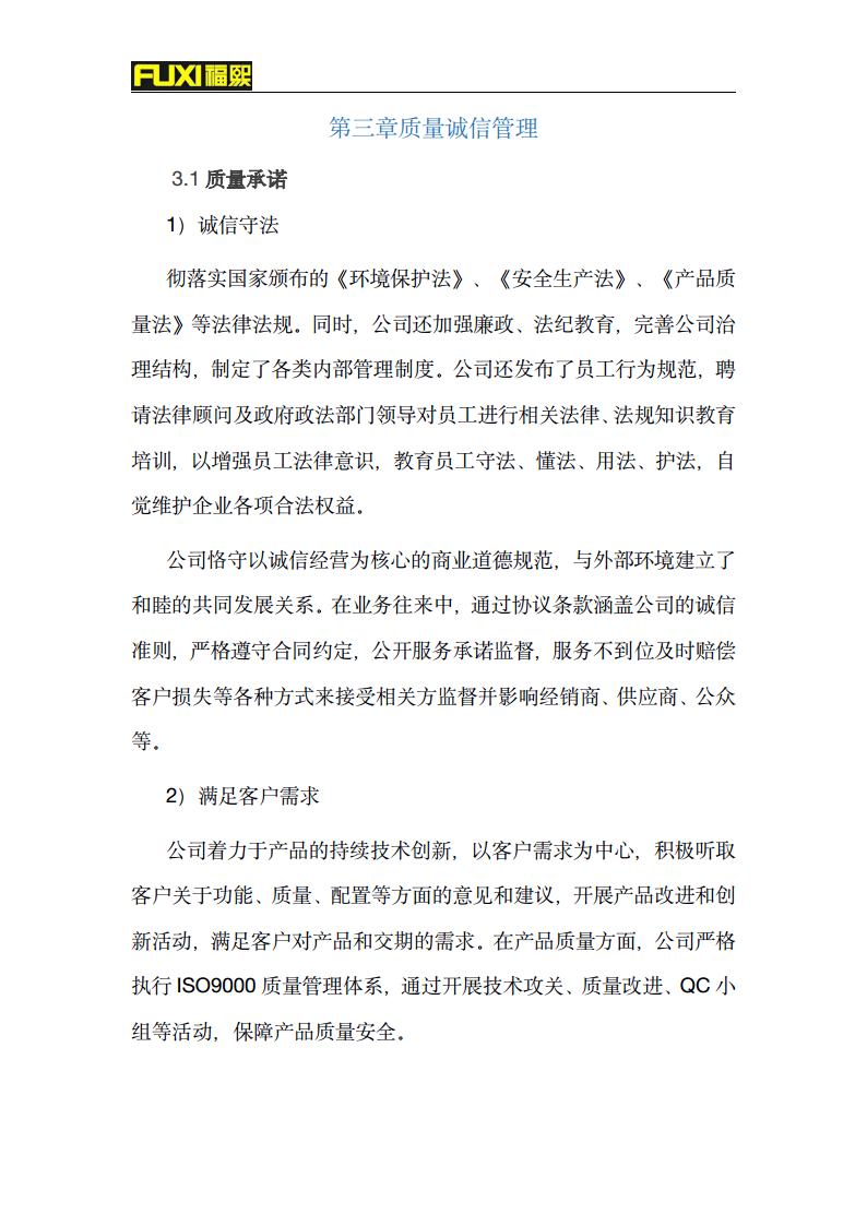 福熙質(zhì)量誠信報(bào)告